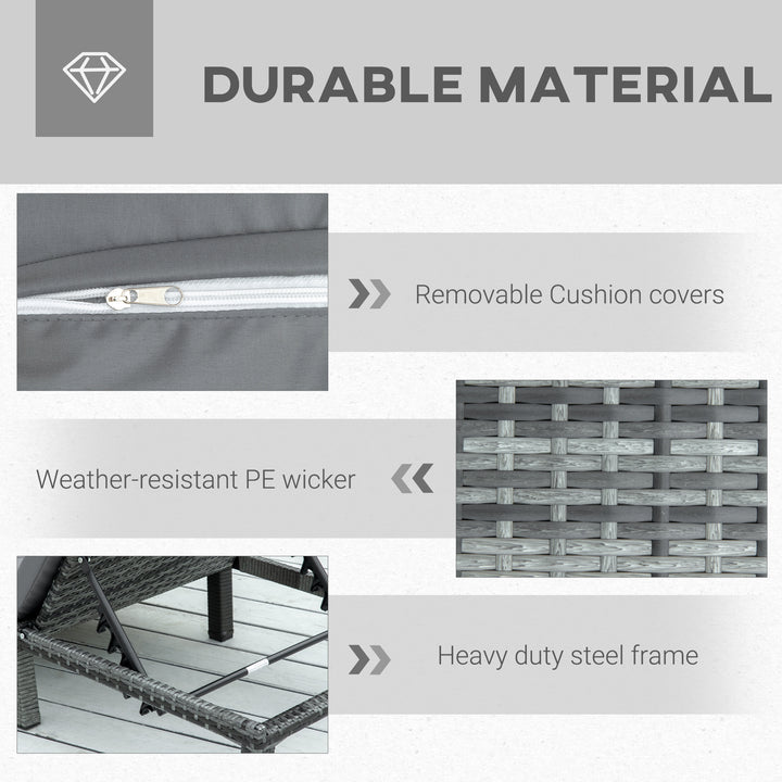 Lounge in luxury, whether in the garden or patio outdoors - thanks to this longline sun seat from Outsunny. Formed of a powder coated metal frame, with PE wicker wrapped around: weather-resistant, durable and beautiful. The back sets to five different positions so you can chose an angle most comfortable for you. The comfortable longline seat comes with a removable cushion; the polyester cover can be washed to keep it clean. Style and comfort, blended into together.