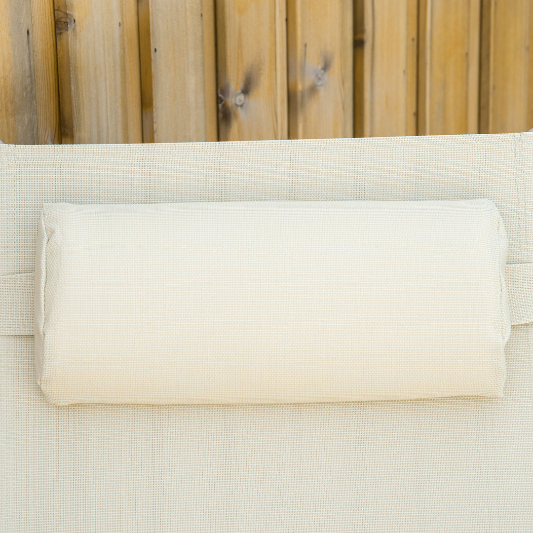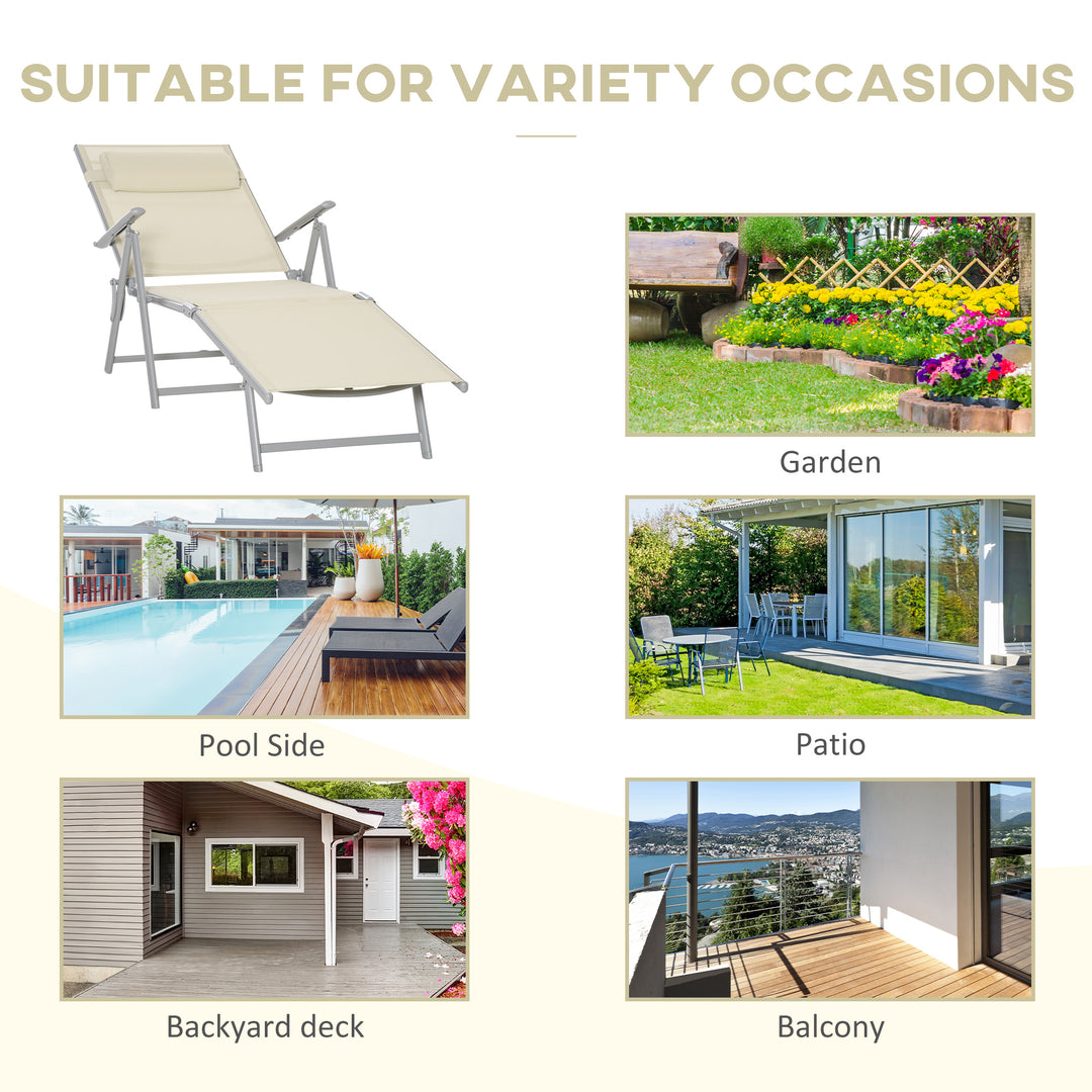 Relax easily all day long - thanks to this Outsunny garden loungers. The seven-level adjustable back means you can rest back to a position you want: whether shutting eye, reading a book or catching up with a friend. The metal frame is strong, with three long base legs keep you balanced, wrapped in fabric to hold your body with full support. The removable top pillow keeps your head comfortable. When you've finished using it, the garden sun lounger is easy to fold up, carry and store.