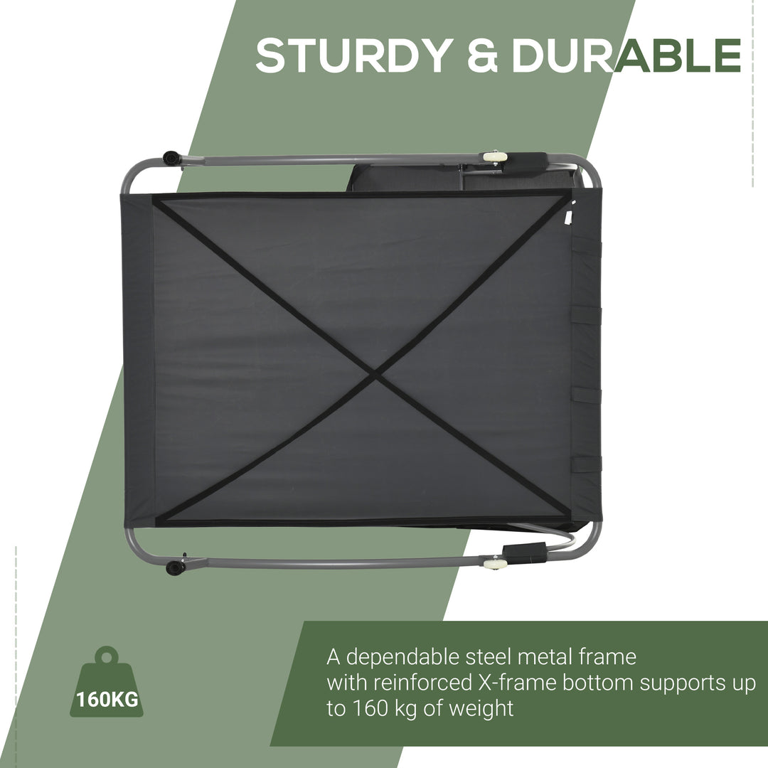 A modern minimal designed, weather-resistant double hammock bed from Outsunny. Constructed from durable metal frame and oxford fabric polyester offering the desired durability for long terms use. The detachable and adjustable canopy helps provide the correct direction of shade, every time. The 2 wheel design offers the flexible movement and replacement of the bed to enjoy your outdoor space.