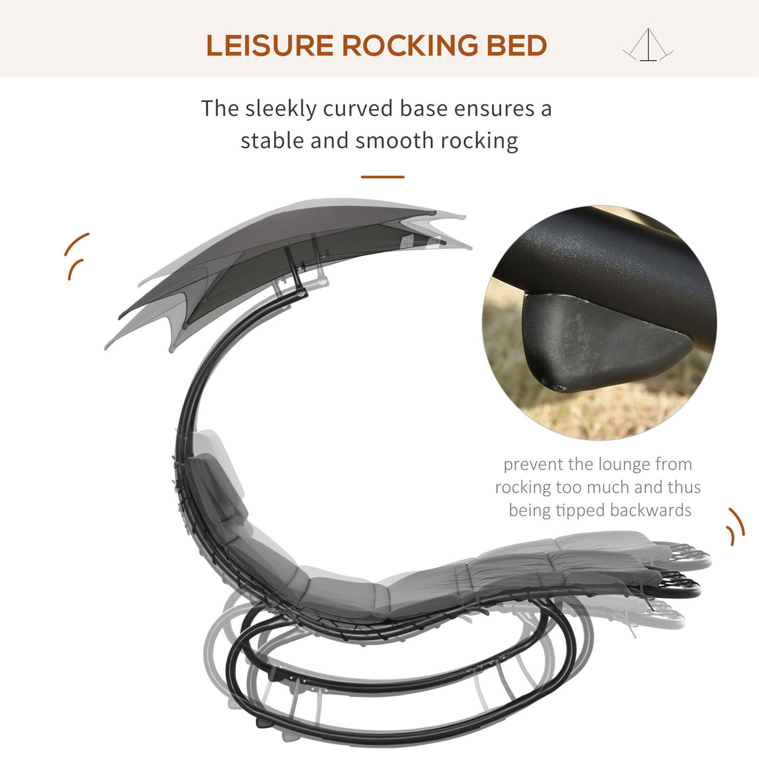 Relax comfortably with protection with garden rocking chairs for adults from Outdunny. The steel frame ensures a solid and supportive base, with the top padded cushion giving you a soft spot to sink into. The contoured shape of the frame works in line with your body's curves for maximum support. It's finished with a removable umbrella above, keeping you safely shaded from any sun above. Sit down in this stylish rocking chair outdoor to enjoy beautiful summer days to their fullest!