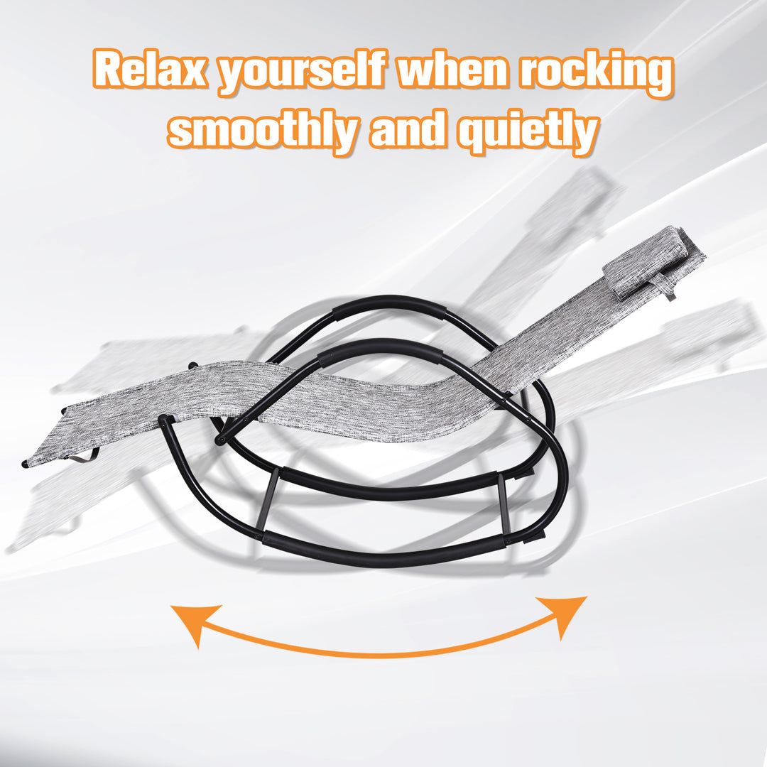 Designed with complete relaxation in mind, this rocking sun lounger is ideal for enjoying the sun in your garden, on your balcony and wherever else possible. Made from lightweight but sturdy metal which can handle up to 160kg, the frame is crafted into a unique design which will let you rock forwards and backwards smoothly and gently, with a tough and durable texteline sling covering the whole of the waved seat for maximum comfort, as well as allowing your skin to breathe in hotter temperatures. With pads on the upper of the armrests so your skin doesn’t touch the metal when It’s hot, this lounger is completed with a removable pillow for head support and comfort if wanted.