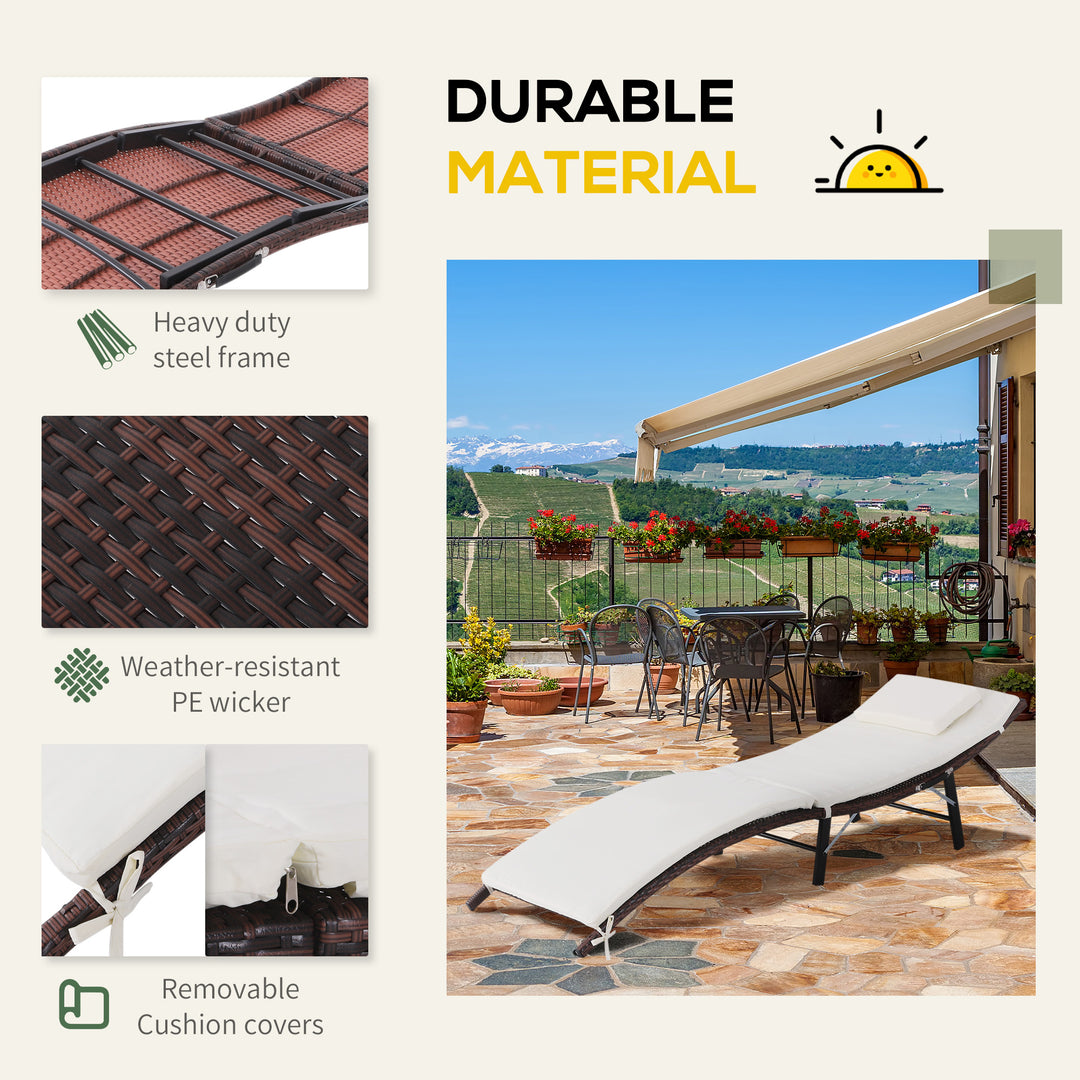 This Rattan lounger from Outsunny is perfect for laying back and catching rays in the summer heat. Made from PE wicker, it will withstand the rain and wind alongside sun exposure, making it durable enough for use all year long. Made with a powder coated steel frame underneath for supreme strength, on the top lays a thick padded cushion for comfort when in use and its foldable design allows you to pack it away when not in use or take with you with no hassle at all. ItÕs a great investment for your garden and home for years to come.