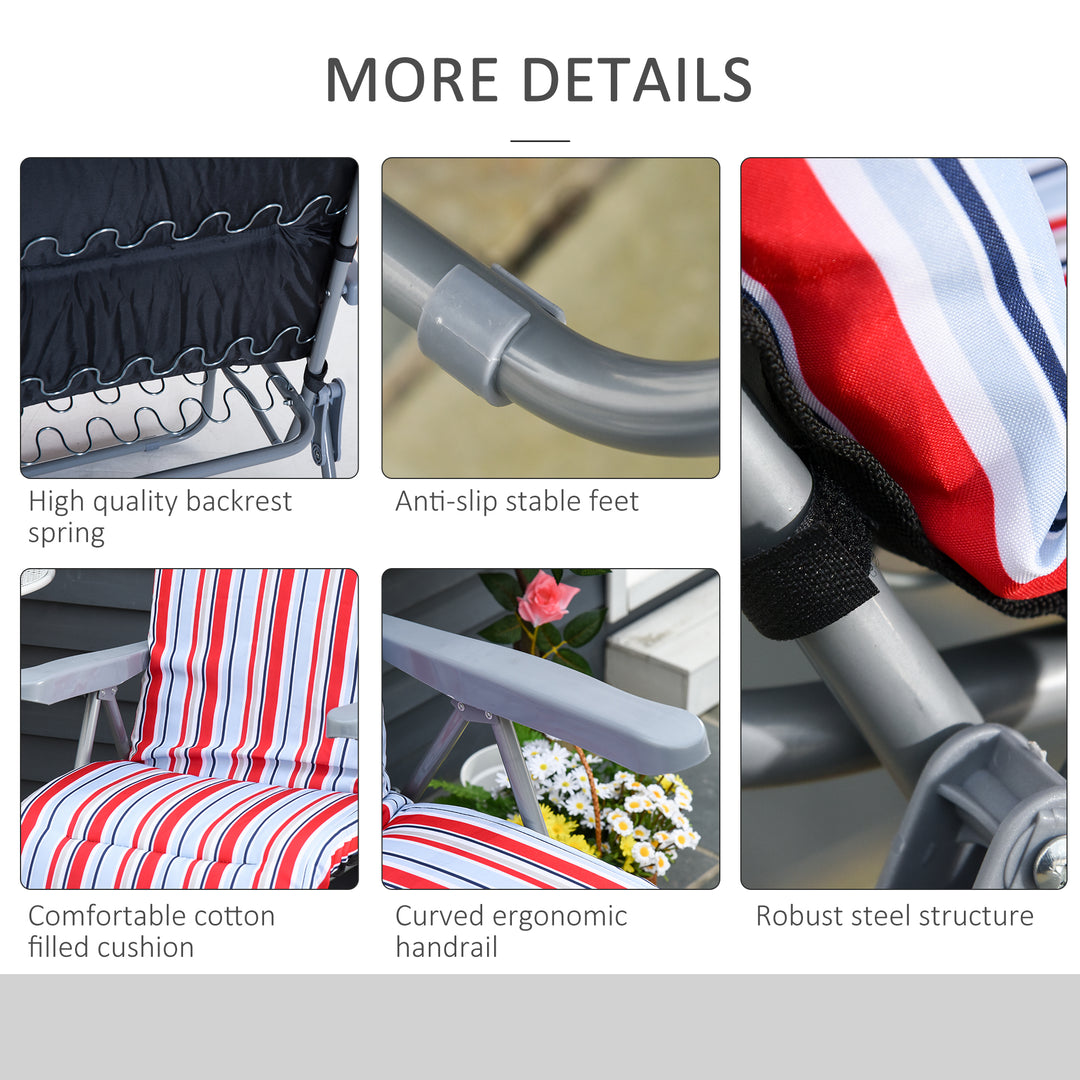 - Foldable padded garden lounger with 5 position reclining adjustment