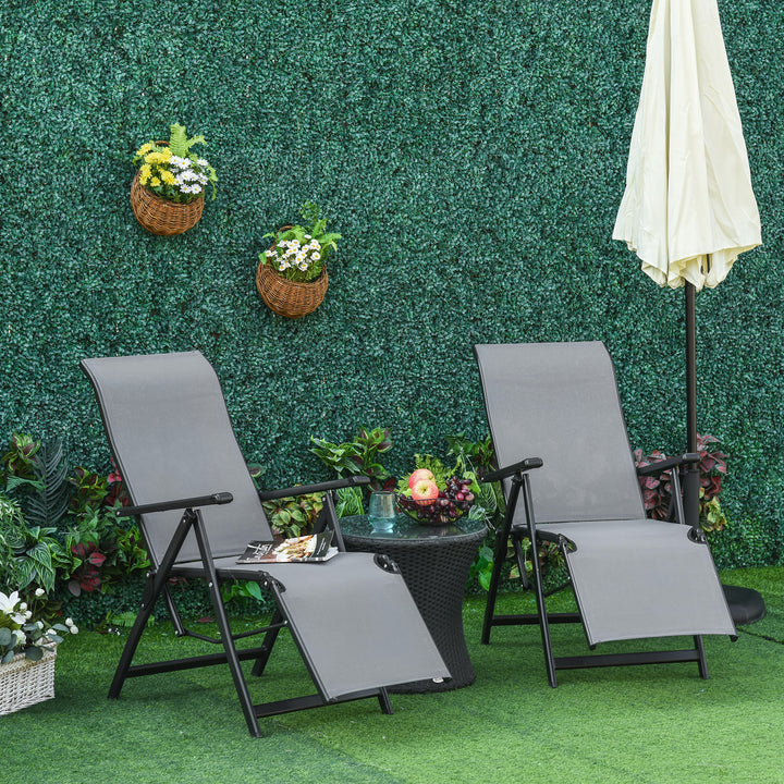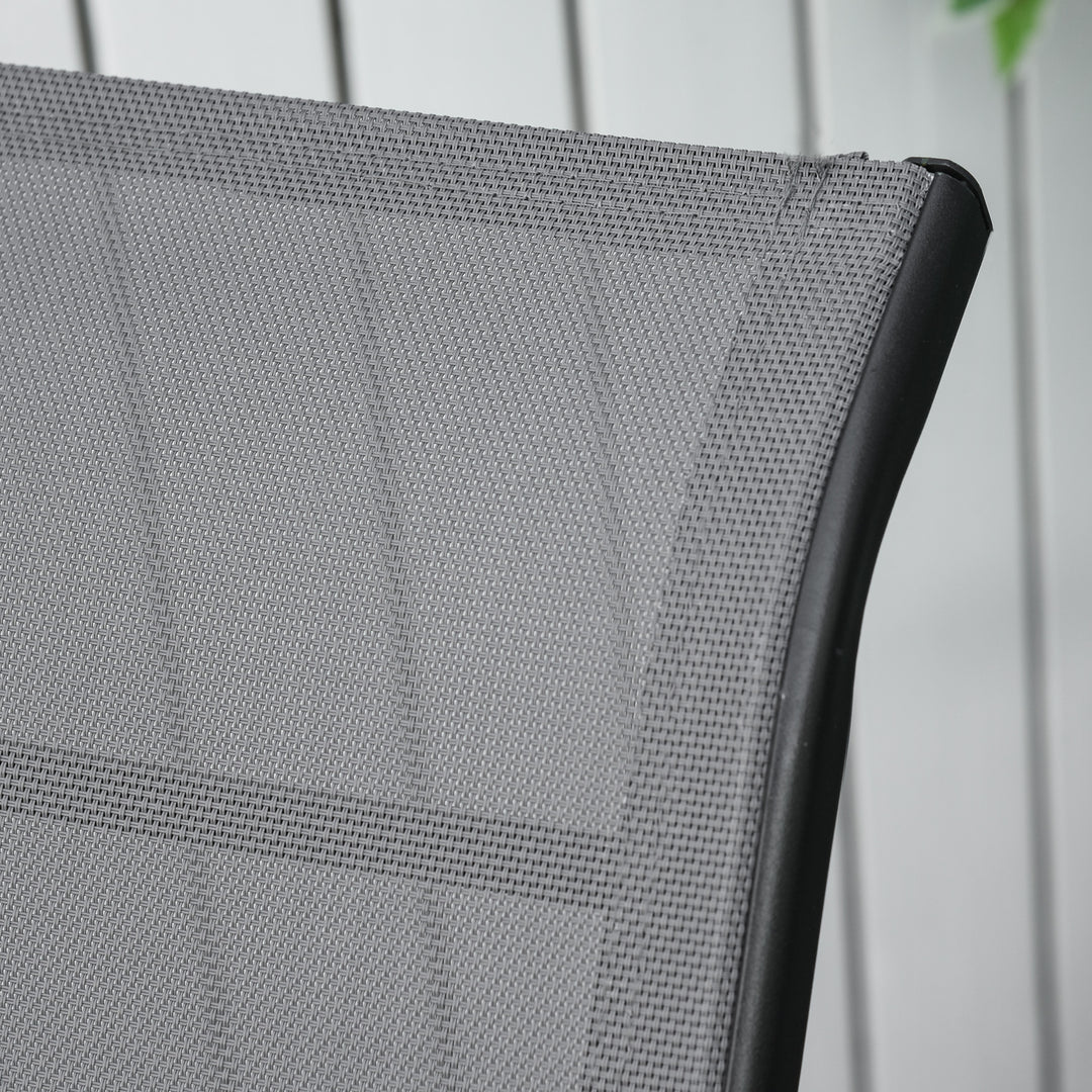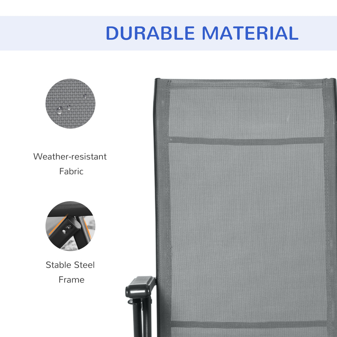 Lean, and relax with a friend outdoors with Outsunny garden recliner chairs set of 2. Each chair can be set to ten different positions between the back and foot area, meaning you are able to set it to a shape best for you. Using mesh fabric for the seats, you are able to sink in with full-body support, whilst the mesh composition allows the skin to breathe. Made from sturdy powder-coated steel, the folding sun lounger is tough and solid, finished with armrests for extra comfort and support.