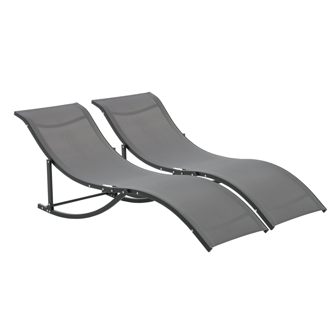 Outsunny Set of 2 S-shaped Foldable Lounge Chair Sun Lounger Reclining Outdoor Chair for Patio Beach Garden Grey