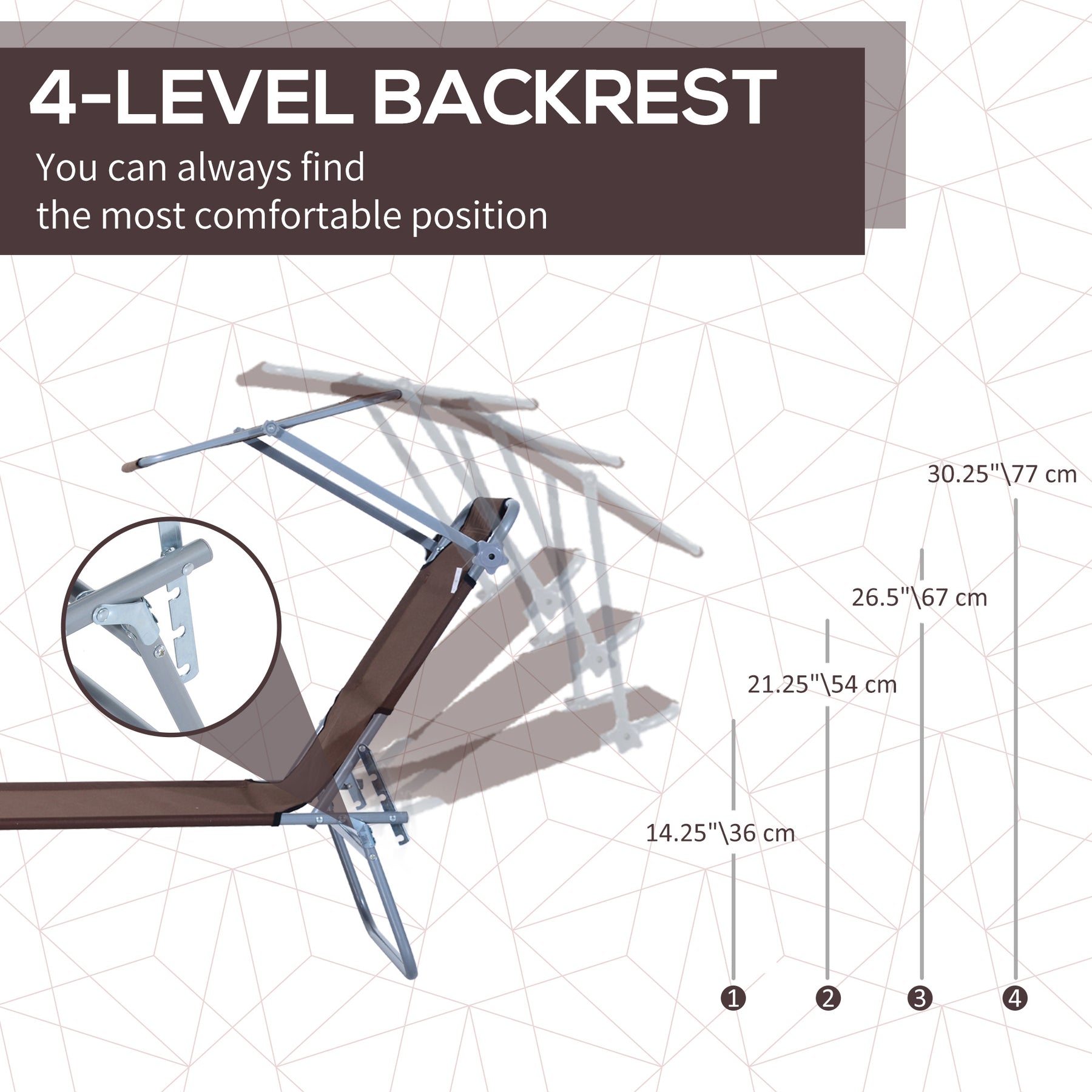 Reclining Chair Sun Lounger Folding Lounger Seat with Sun Shade Awning Beach Garden Outdoor Patio Recliner Adjustable (Brown)