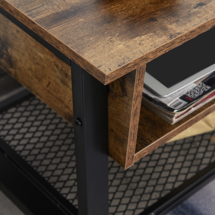 Rediscover the beauty of industrial styling with help from this TV unit from HOMCOM. In a sleek chestnut brown and matte black finish, it is crafted into a spacious design. A large steel mesh shelf is placed on the bottom and two smaller compartments on the top, giving you plenty of storage and display room. Using steel for the base frame and legs, this piece is tough and continually balanced. It's finished with a large tabletop for extra holding room and adjustable feet to keep the balance.