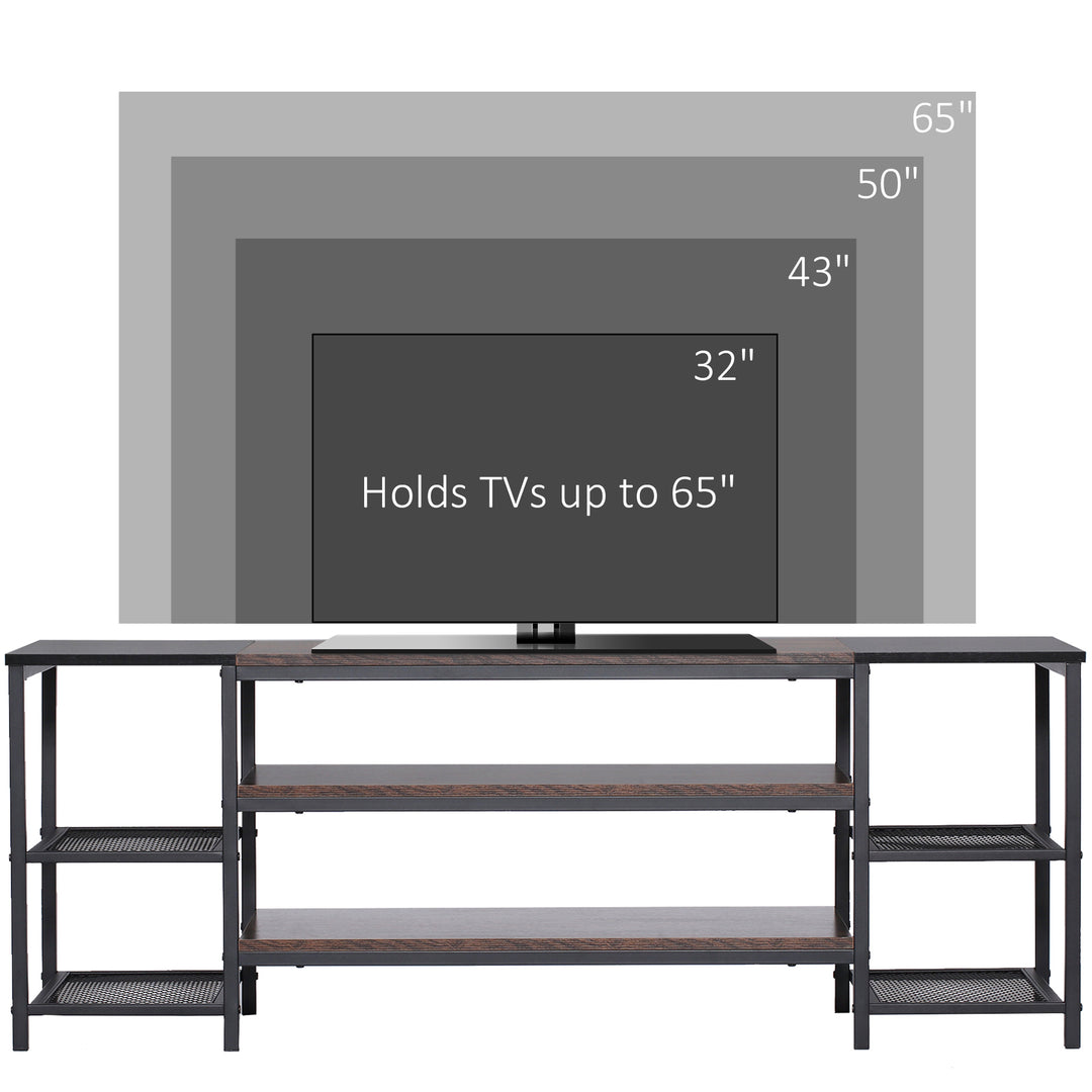 TV Unit Cabinet for TVs up to 65 Inches, Industrial TV Stand with Storage Shelves for Living Room, Brown and Black