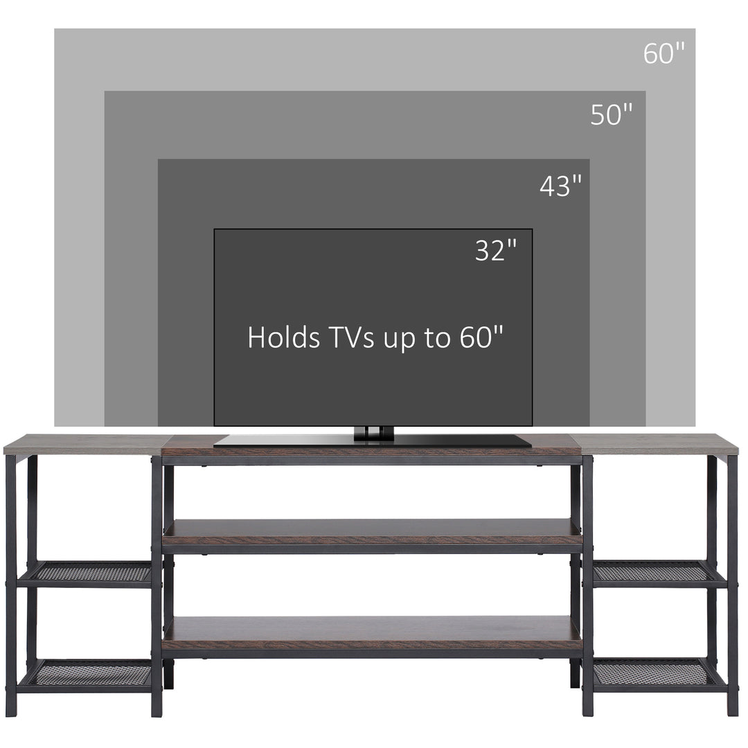 TV Unit Cabinet for TVs up to 65 Inches, Industrial TV Stand with Storage Shelves for Living Room, Brown and Grey