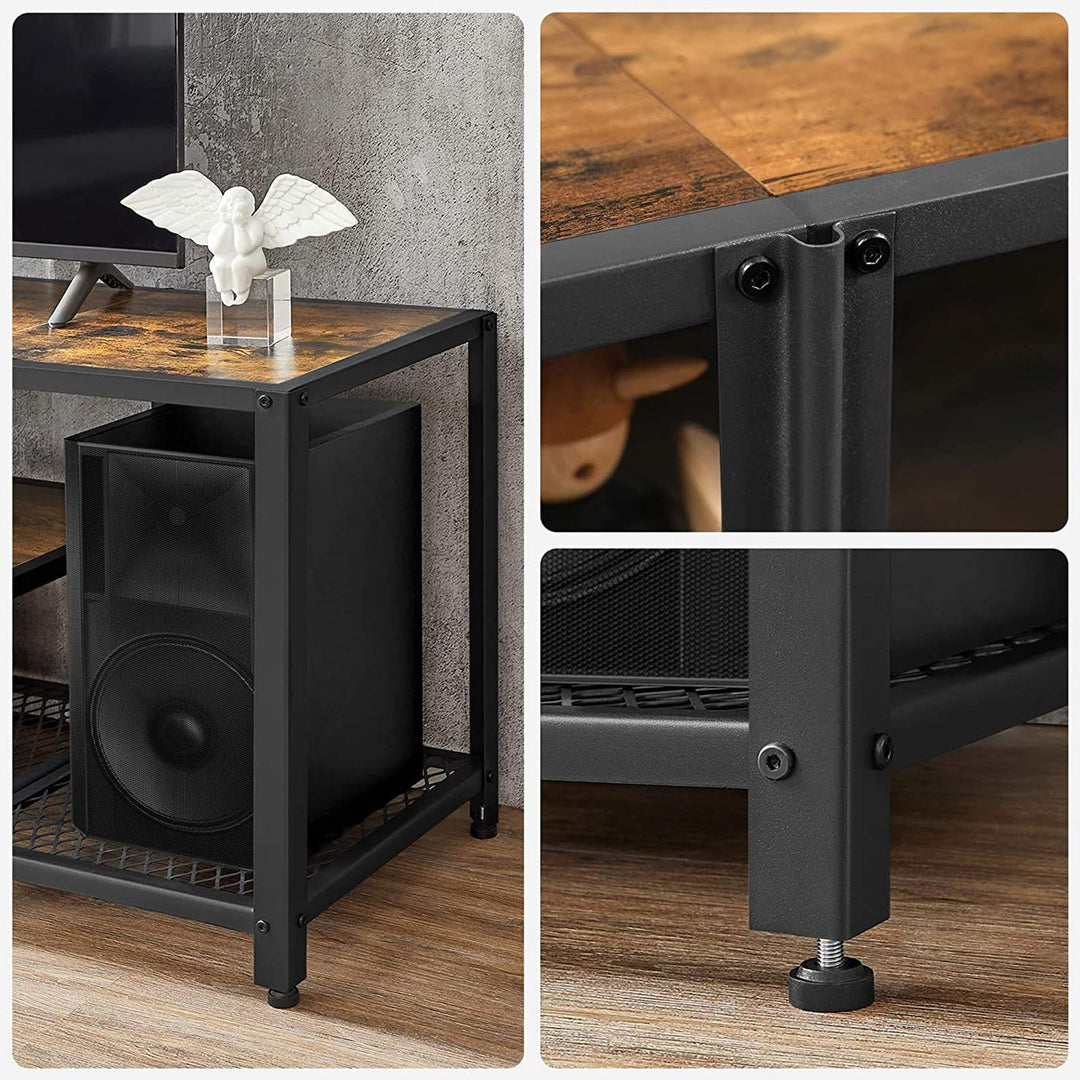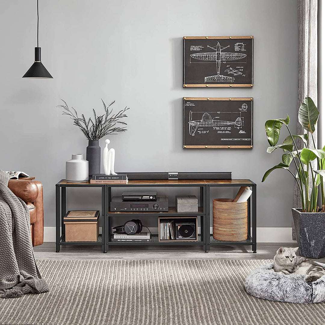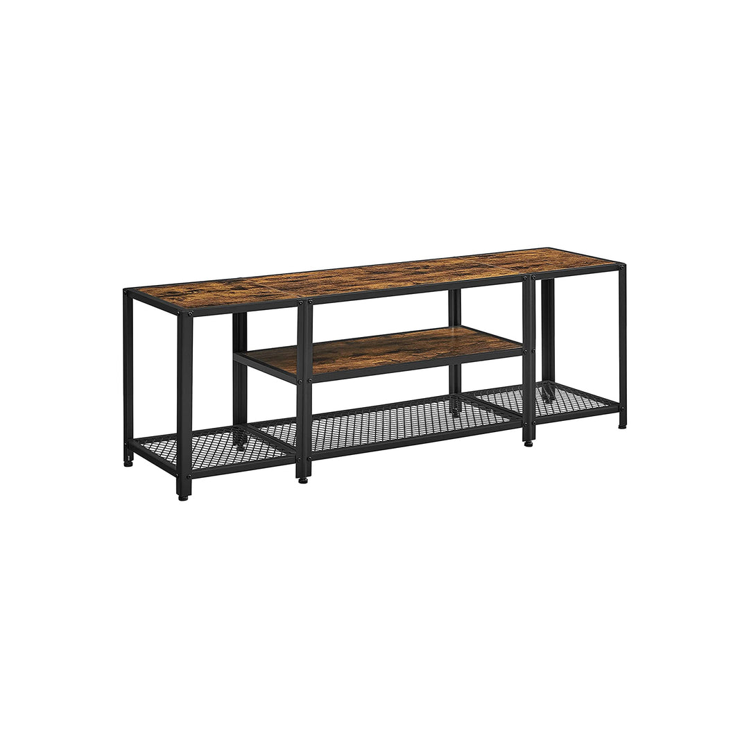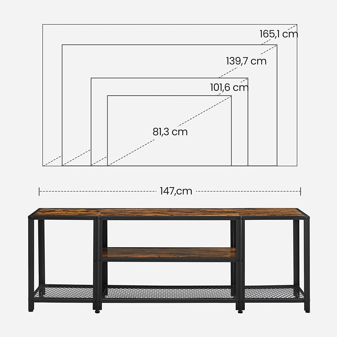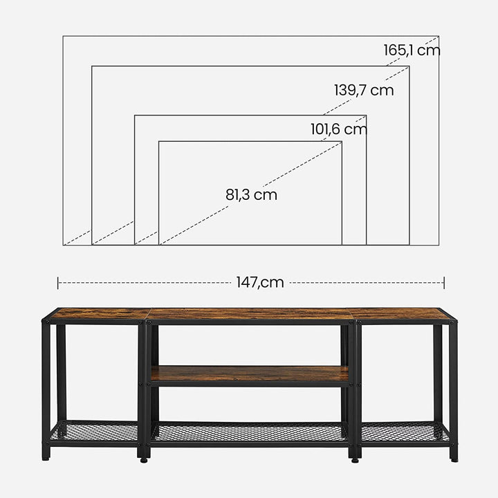 VASAGLE 3-Tier TV Stand for TVs up to 65 Inches, 147 cm TV Unit with Open Storage Shelves, Industrial TV Cabinet, for Living Room, Entertainment Center, Bedroom, Rustic Brown and Black LTV097B01
