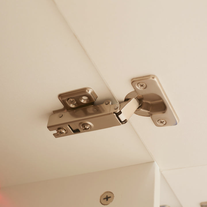 • Two shelves for storage, with half-cut doors. Handy back holes for holding cables together