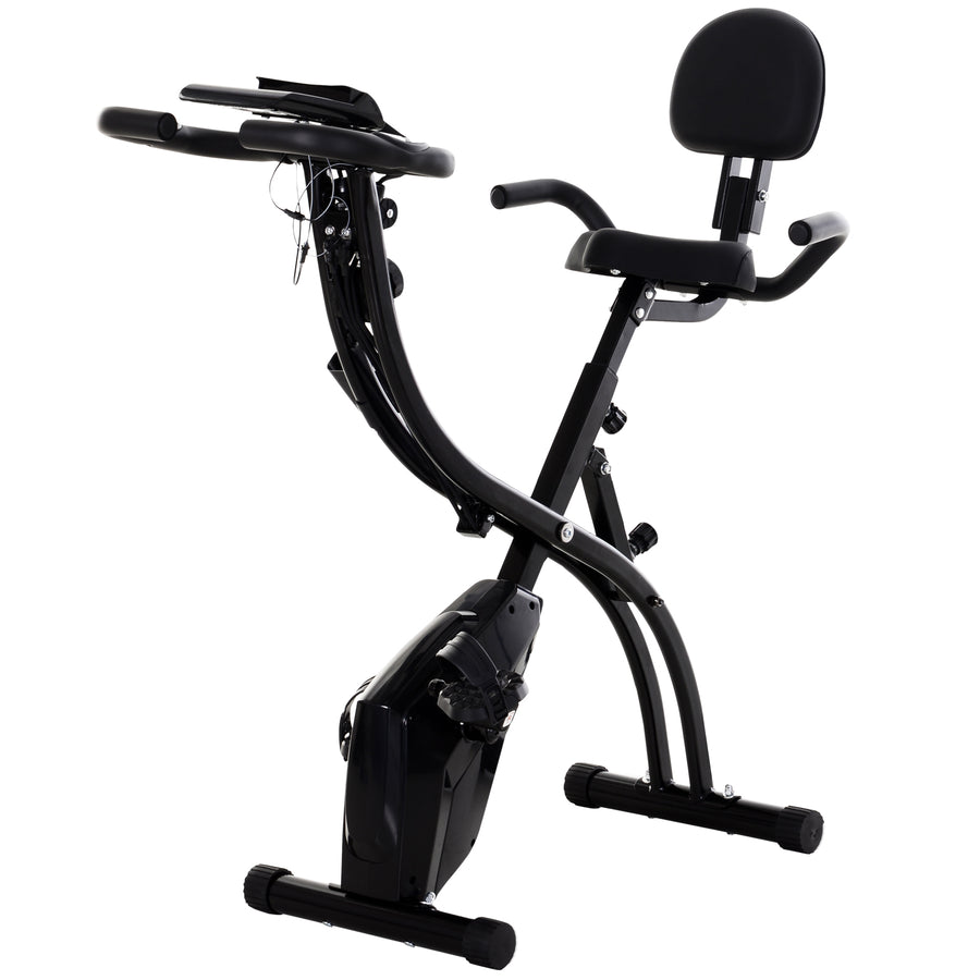 Get a complete cardio workout in the comfort of your own home with an indoor resistance adjustable exercise bike from HOMCOM. With the exercise bike with an LCD that tracks time, speed, distance, heart rate, and calories burned you can monitor your progress while you work out. Come with a phone holder, you can watch your favorite shows during exercise. It can be used as an upright exercise bike, a recumbent bike, and a tension rope to help improve upper body strength.