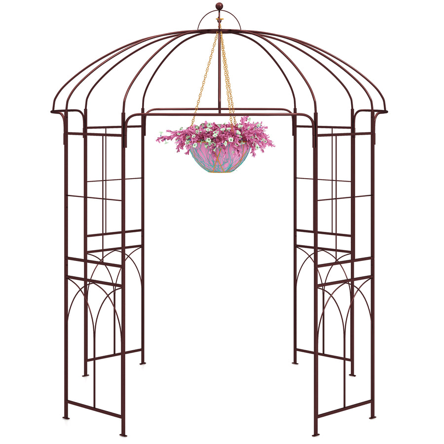 High-quality metal and powder-coated finish offer a sturdy and durable garden arch arbour, and you can fix the heavy-duty metal arbour to the ground with the ground stakes for excellent stability. This birdcage-shaped arbour is designed with French style and is perfect for climbing plants, balloons, tulle and other decorations, allowing you to create your dream arbour. Besides, the high pergola pavilion offers nice space for peaceful meditation, weddings and more activities and is suitable for gardens, courtyards and other places. If you are looking for a garden arch arbour like this, do not hesitate to place an order! Sturdy and Durable Construction: The birdcage-shaped garden arbour is constructed of heavy-duty powder-coated metal, which is characterized by high strength, weather resistance, and rust resistance, ensuring long-lasting durability. And it can withstand harsh weather conditions for long-term outdoor use. Large Planting Area: The arch arbour is designed with 4 long climbing trellises and a climbing arch, providing large space for various climbing plants to grow, such as ivy, clematis, wisteria, grapevine, morning glory, and more. And there exists a hook on the top for hanging flower baskets. Stable and Wind-Resistant Structure: In contrast to the normal garden arbour, our trellis stand is designed with 16 metal ground stakes for firmly fixing it on the ground, enhancing stability and wind resistance. In addition, all parts are numbered in the user’s manual and there feature clear illustrations for reference, it is easy to set up. Unique Birdcage Design: The metal pergola pavilion arch adopts a unique birdcage, which can become a unique scenic spot in your garden. And you can decorate the arbour with climbing plants, colourful balloons, wedding tulle, decorative lights, etc. You can also add chairs and tables under it to create an outdoor dining area. Wide Application: With vintage bronze colours and exquisite patterns, the metal gazebo adds a touch of elegance to your space while giving beauty to your life. It is suitable for the garden, backyard, lawn, beach, hotel, and other outdoor places. And you can DIY it with different decorations to witness every moment of your happiness, such as weddings, birthday parties, or other ceremonies.