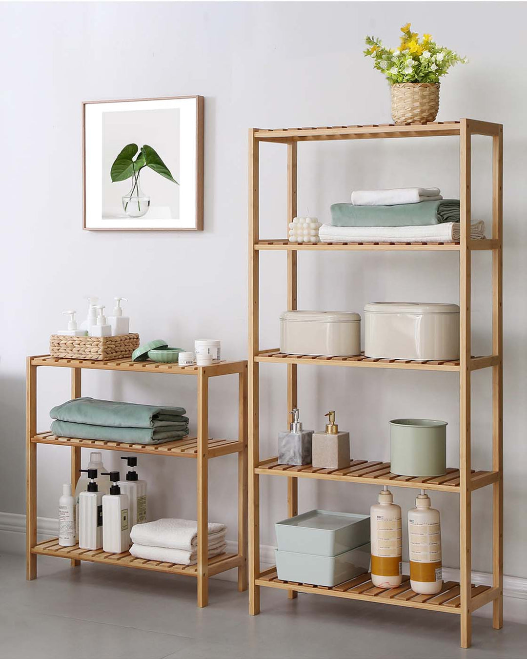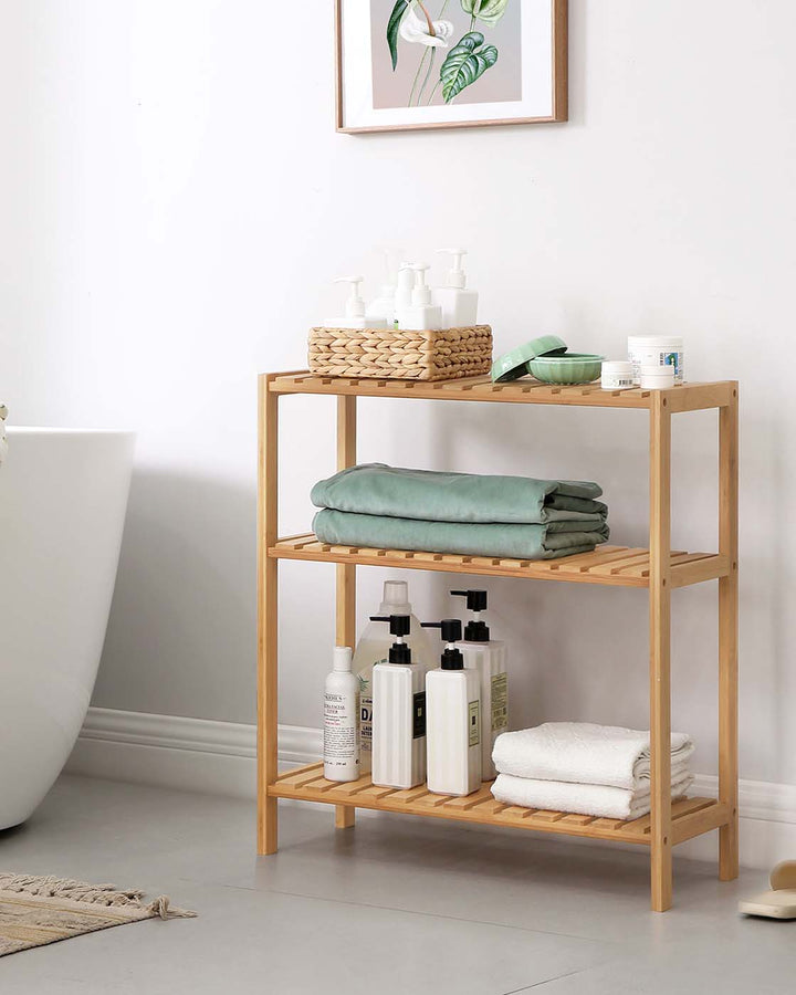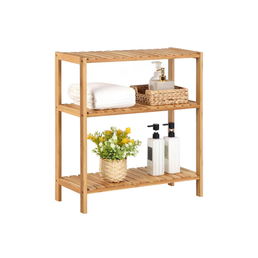 SONGMICS 3-Tier Bamboo Bathroom Storage, Storage Shelves, Stand Shelves, Shoe Rack 60 x 26 x 66 cm, ideal for Hallway, Bathroom, Kitchen, Living Room BCB33Y