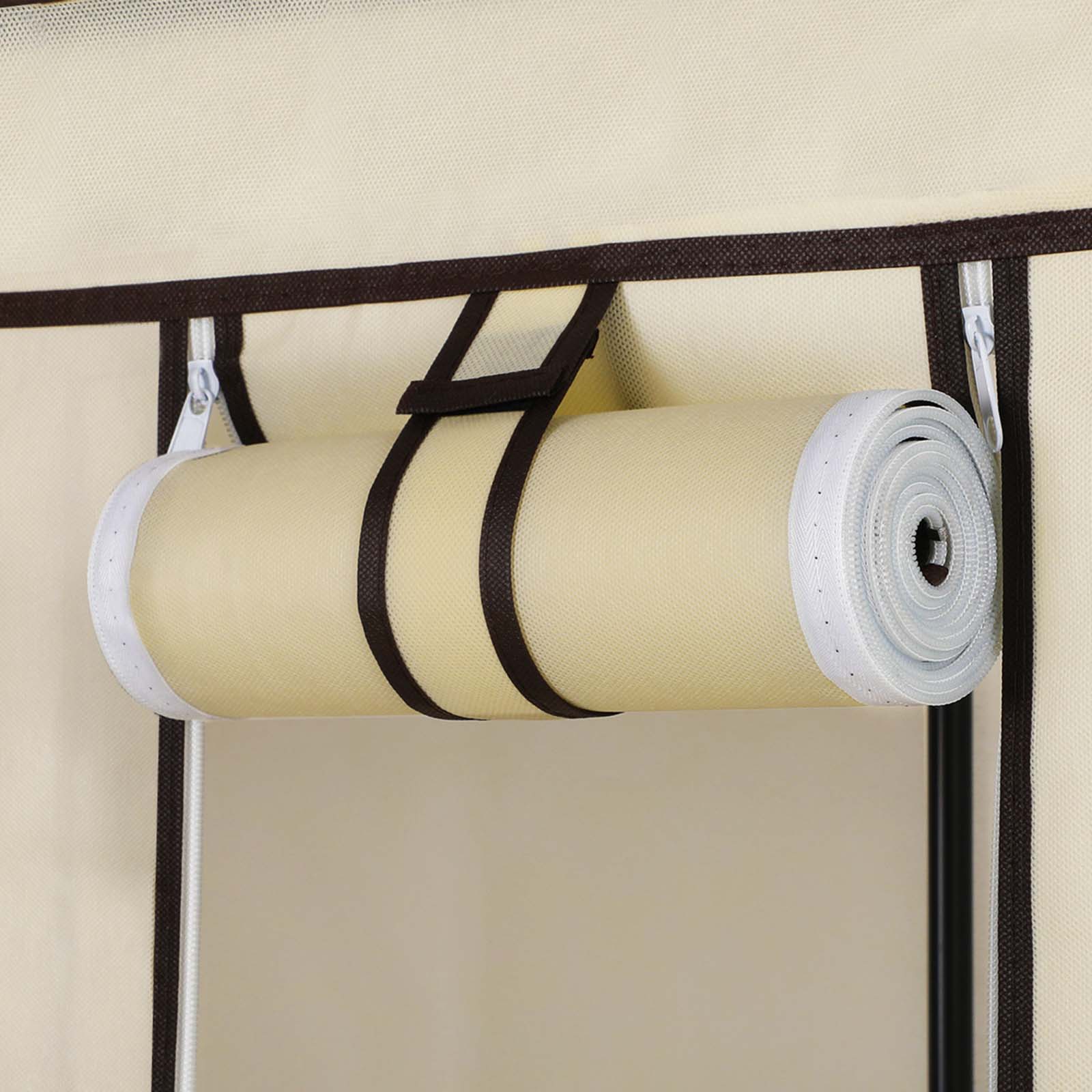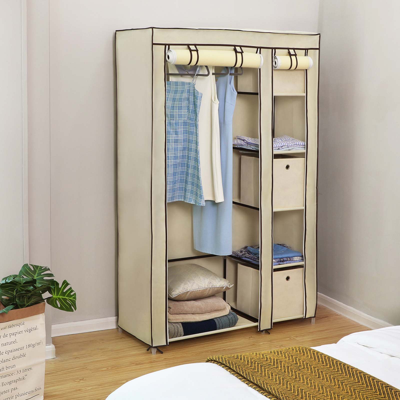 SONGMICS Double Canvas Wardrobe Clothes Storage Organiser Bedroom Furniture Cupboard with 6 Shelves Hanging Rail Beige 110 x 45 x 175cm (W x D x H) LSF007M