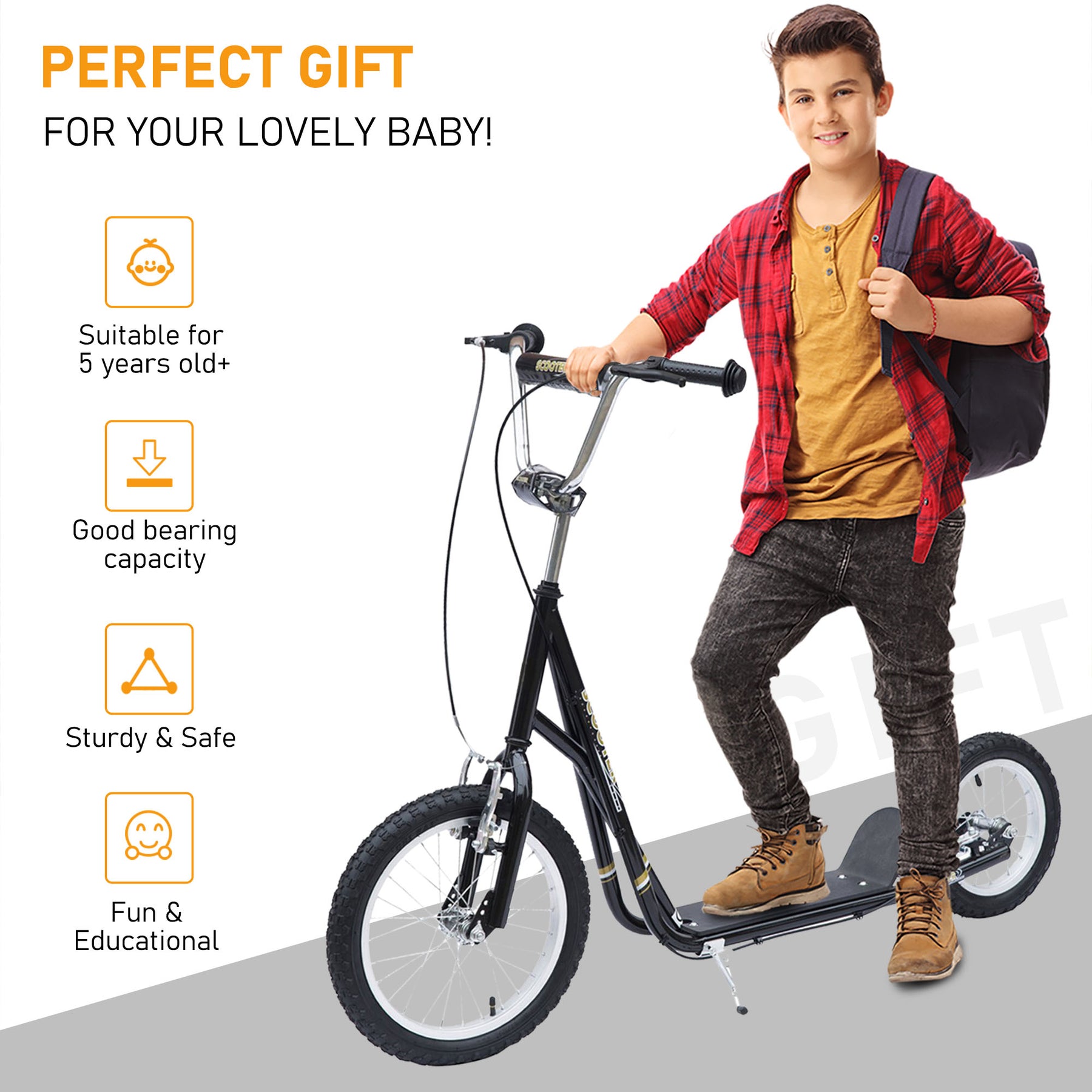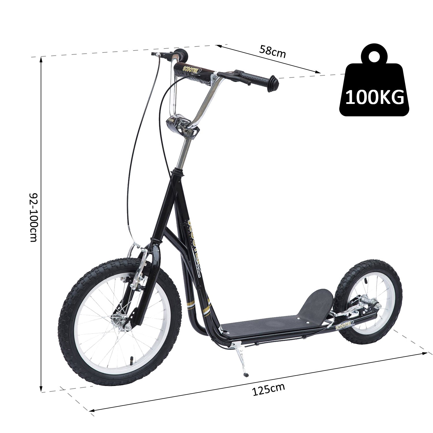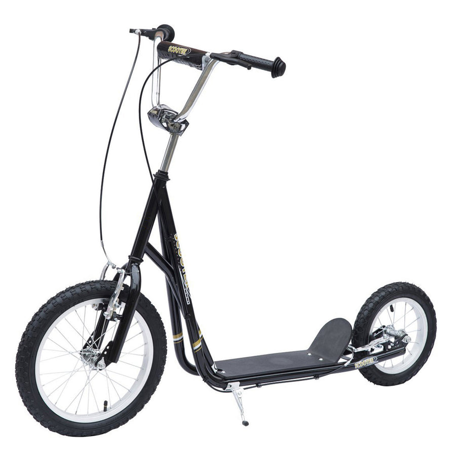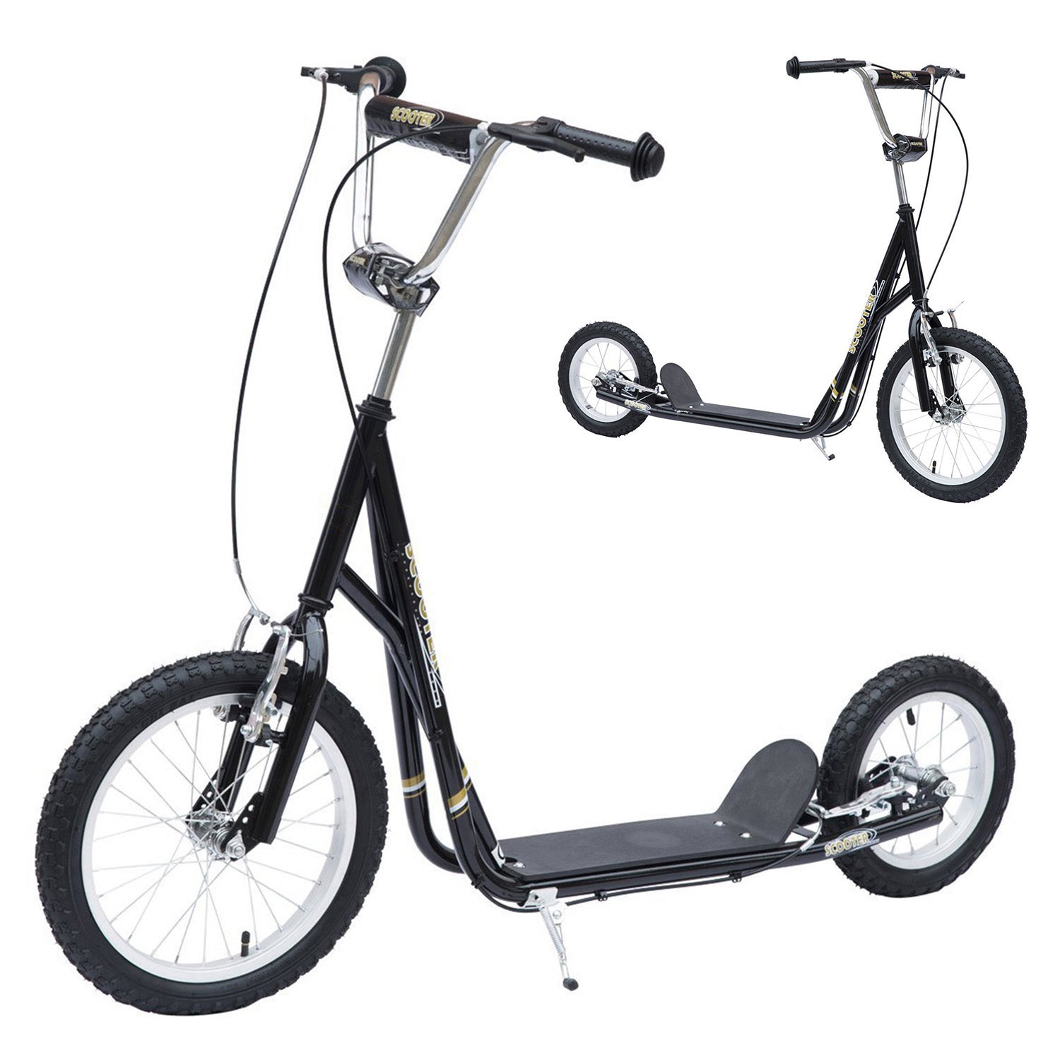 This stunt scooter is the perfect gift for kids and adults. It features a strong steel frame, 16” pneumatic tires (The small size is 16" front and 12" rear pneumatic tires), front and rear caliper brakes, height adjustable handlebars, with a vibrant finish. These scooters are ideal for getting out in the fresh air and just enjoying the outdoors!