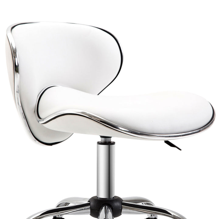 This HOMCOM workshop stool puts you at just the right height, helping to create ideal working environment. The firm back keeps your spine in proper form and the padded seat cushion gives you the comfort for the longer durations. With fives wheels, this hairdressing chair is easy to scoot around or slide around the working area. The polished chrome base and sleek design is ideal for most décor.