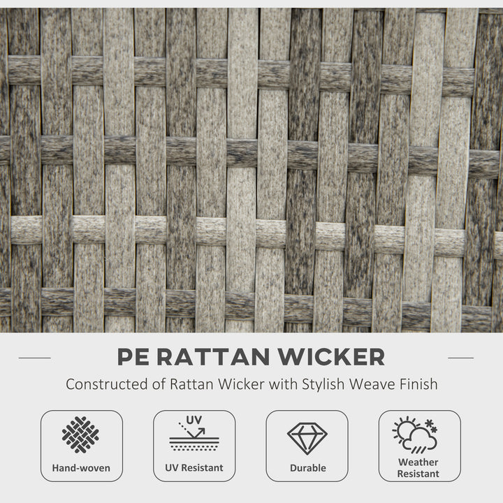 Enjoy garden warmth and ambiance all year-round with this Outsunny fire pit table. Rattan-effect design is stylish, looks great matched with other furniture. The tabletop is fitted with a centre fire pit - the 50,000 BTU burner is powerful and produces a clean smokeless burn. The flame can be adjusted too. The thermocouple closes the valve if the flame goes out for safety - no leaking gas. Complete with a glass guard, protecting against flying sparks.