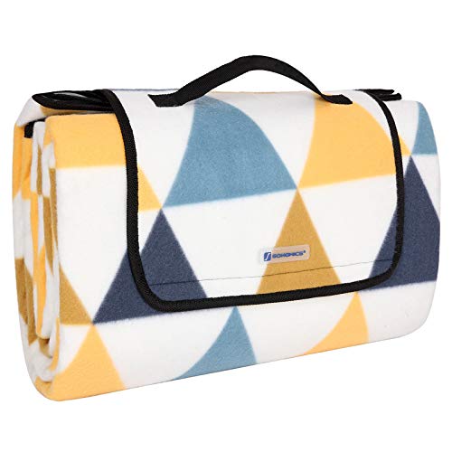 SONGMICS Picnic Blanket, 150 x 200 cm, Outdoor Beach Blanket for Camping, Park, Yard, with Waterproof Backing, Foldable, Yellow Triangle Pattern GCM07S