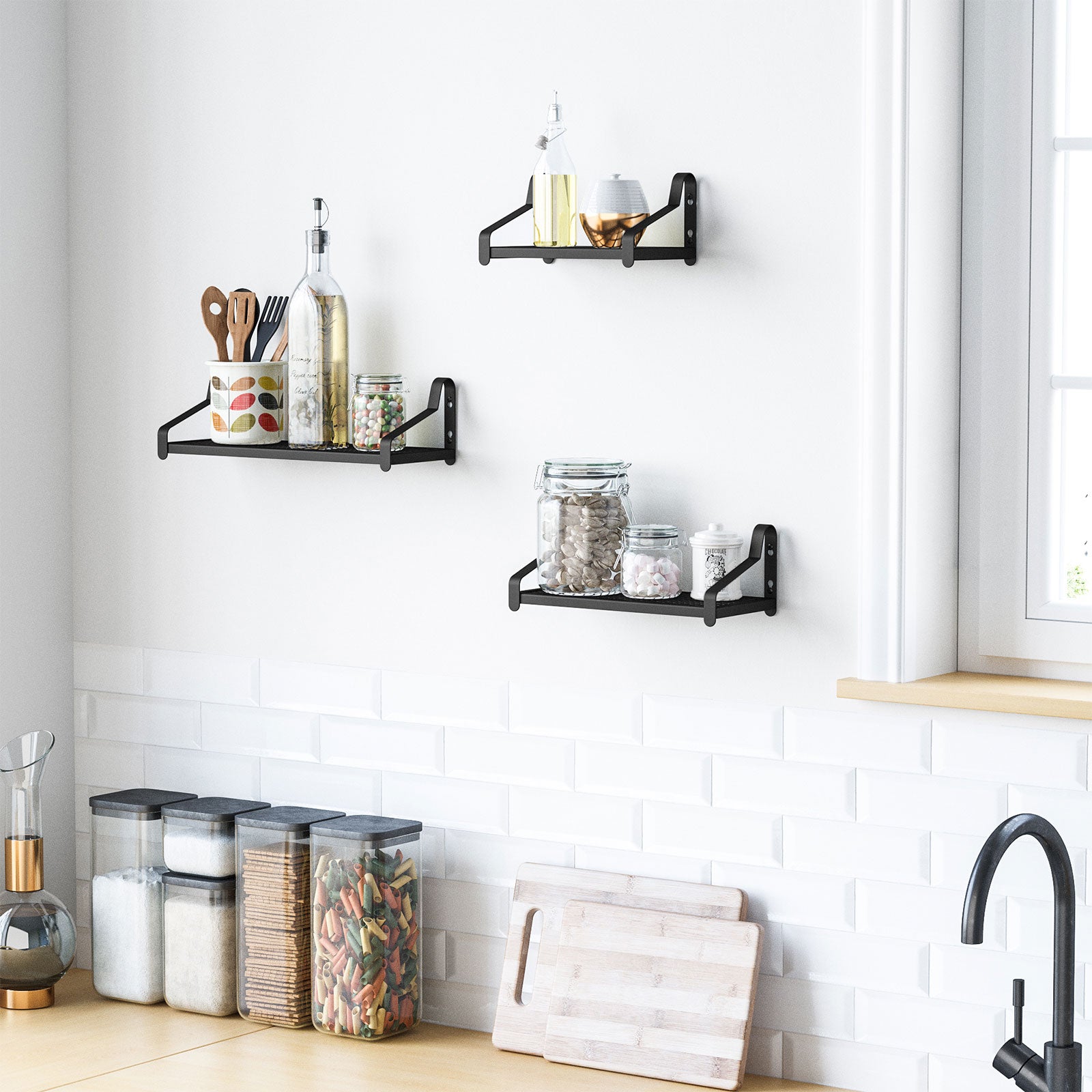 SONGMICS Wall Shelves Set of 3, Metal Floating Shelves, Industrial Wall-Mounted Shelving for Trinkets, Photos, Plants, Decorations, Multiple Layouts, Black LFS031B01