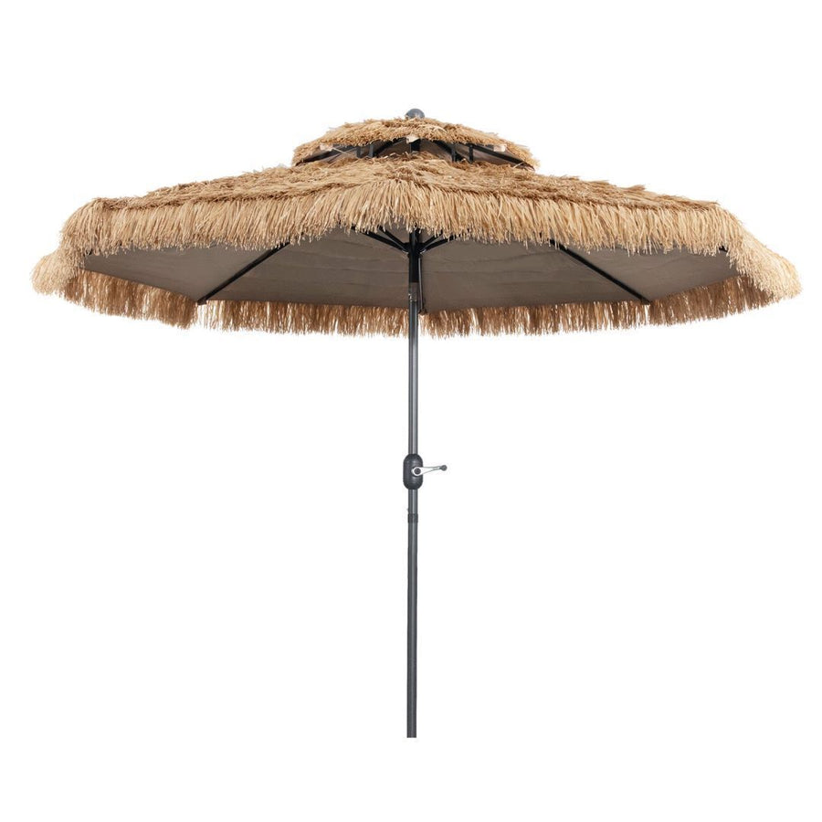 Thatched Tiki Umbrella 2 Tier Hawaiian Style Hula Patio Beach Parasol