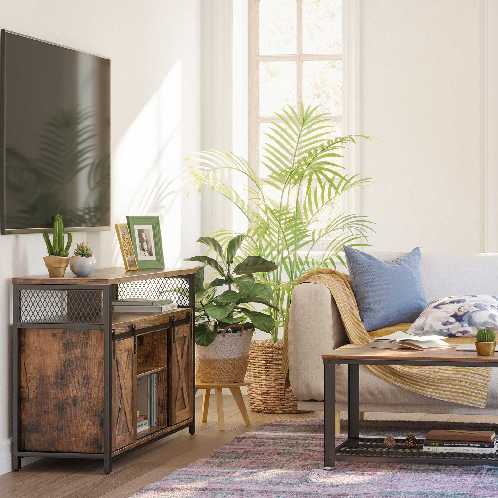 - A Stunning Display: Inspired by barn doors and steeped in rustic style, this TV stand brings an elegant countryside feel to your living room and fits 50", 55", and 60" TVs for binge-watching or family entertainment