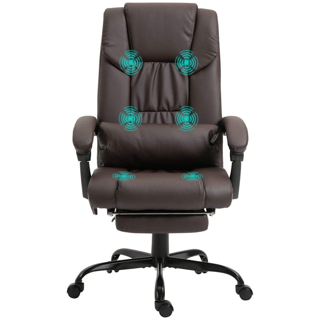Give yourself a professional-feeling massage in your own home with this chair from Vinsetto. An executive design for style in your home office, it has six different massage points: two on the shoulders, two in the lower back and two on the thigh area. Height adjustable between 112cm and 122cm via the lever below the chair. 130° reclining back pairs with the manual footrest to relax whenever. Complete with five wheels on the base.