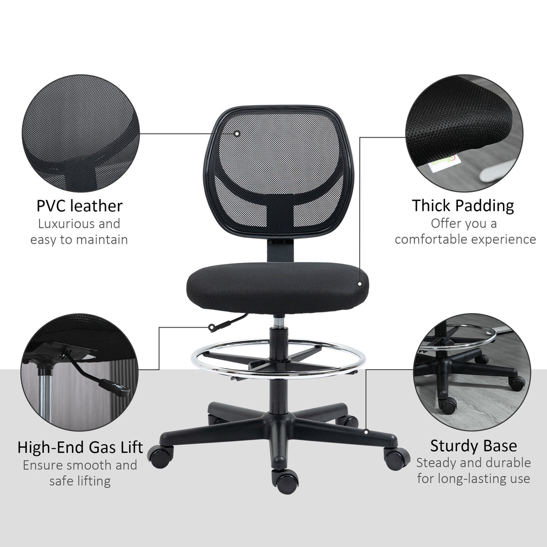 A quality chair needs to be comfortable even after sitting for a long time. This Vinsetto draughtsman chair features thick padding and breathable mesh fabric to offer you the comfort you need. The mesh office chair with height adjustable seat and footrest is designed to fit your sitting style and ensure you are able to be productive. Without armrest, you can sit freely and put this chair under the table to save space. Get the most out of your working time with our ergonomic chair from Vinsetto.