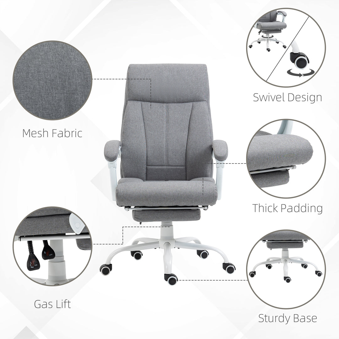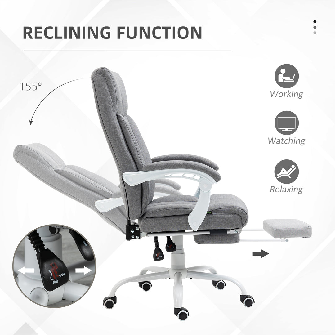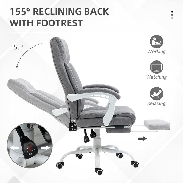 Your long work day calls for this Vinsetto office chair. Relax and recline into an angle you want, thanks to the 155° reclining back and manual footrest. Thick padding for comfort, the linen-look upholstery is soft on skin. Adjust the height between 111cm and 119cm: set to a working level best for you. Comfort and functionality - this home office desk chair does both.