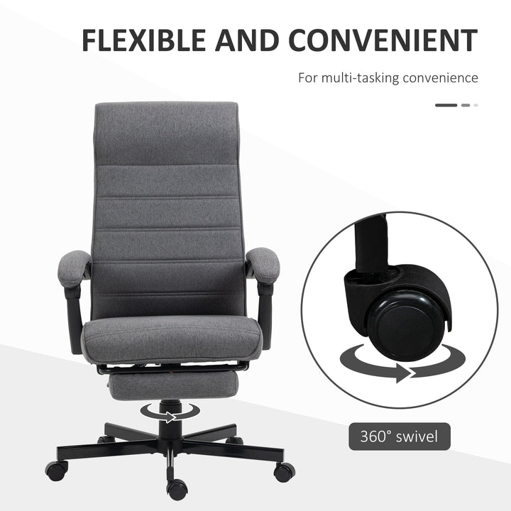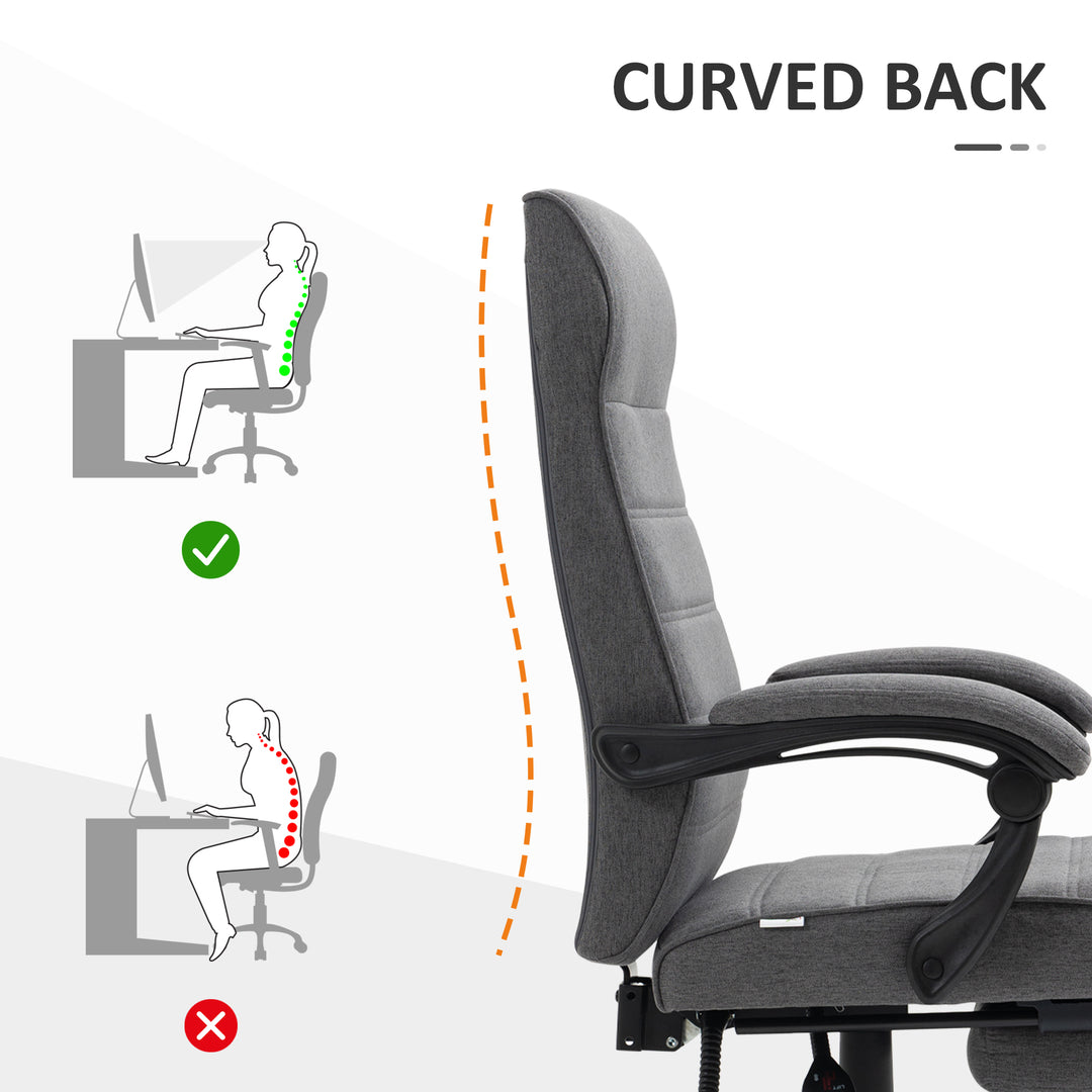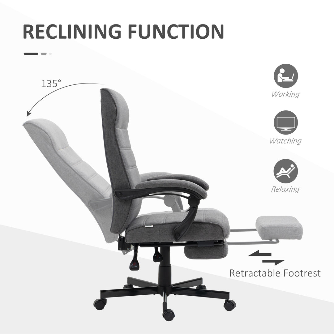 A home office chair, from Vinsetto - use this to get on with your work, wherever you are. A tall back, which is extra padded at the bottom for extra support, reclines back to a maximum 135°; paired with the manual footrest, gives a comfortable spot to rest and take time out. Other ergonomic features include the full-swivel seat, tall back and armrests. Complete with a wheeled base, this comfy chair moves around easily.