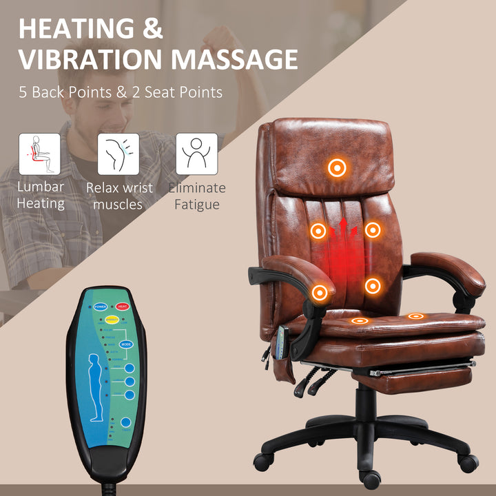 Make yourself comfortable with this Vinsetto massage office chair. Vintage-look faux leather for everlasting retro style, it is stylish and easy to clean. A wide seat will support your body. Five modes, changeable via the wired remote, allow you to control your comfort with ease. The back of the computer chair reclines back to a maximum 155° angle, with a pull-out footrest to complete. Lean back and love the massage.
