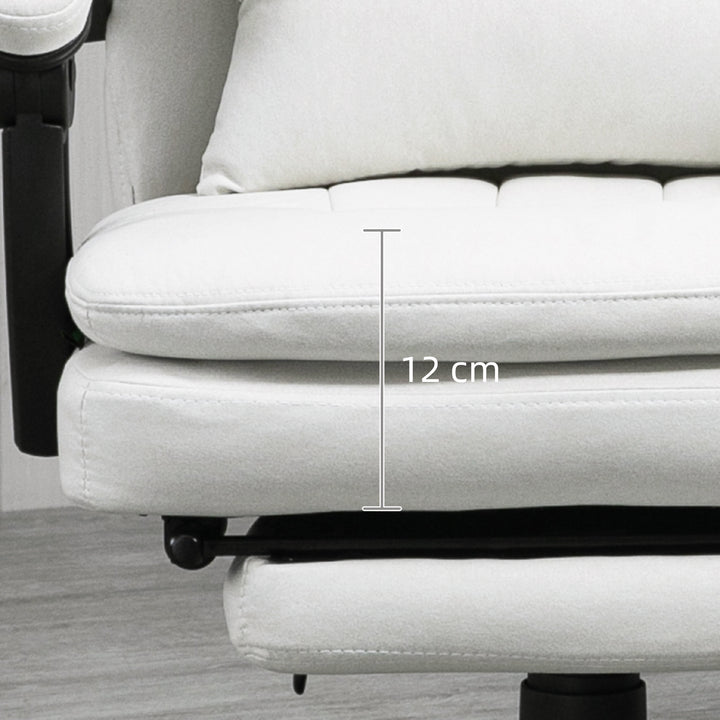 Relaxing your body whenever, whilst supporting your posture as you work: this Vinsetto home office chair is a great everyday piece. Wrapped in microfibre for a soft feel whilst giving it a suave soft leather look, it is fitted with six massage modes: fives modes and lumbar heating to suit you. the 155° reclining back and manual footrest lifts up your body and allows you to relax back. Lay back and let this comfy chair soothe your body away. Lumbar pillow included for extra comfort and support.