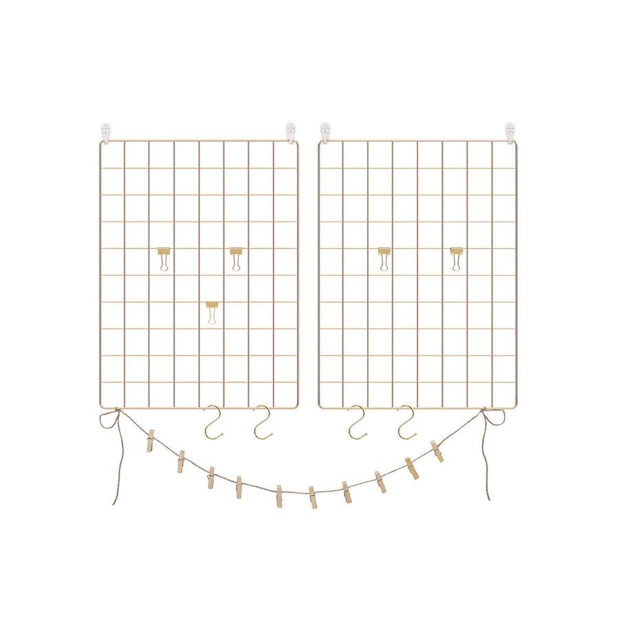 SONGMICS Grid Panels, Set of 2, Photo Wall Display, Metal Mesh Wall Decor, Multifunctional Hanging Picture Wall, DIY, Art Display, S Hook, Clips, Hemp Cord, Rose Gold LPP01DR